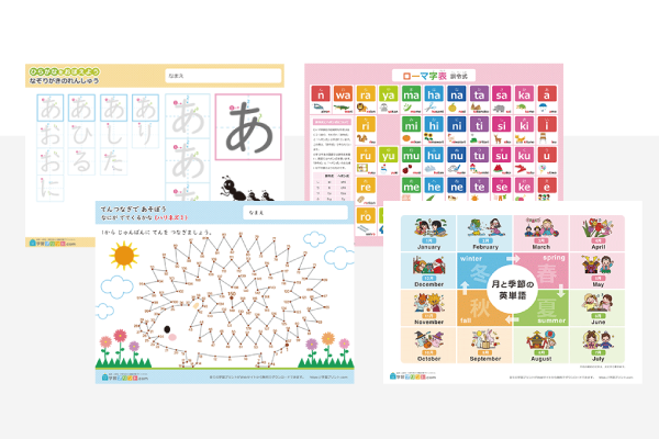 幼児向けの「ぬりえ」や「迷路」などの遊びプリントから、小学校で習う単元の学習プリントまで、サイト内のすべてプリントでが無料でダウンロードができます。